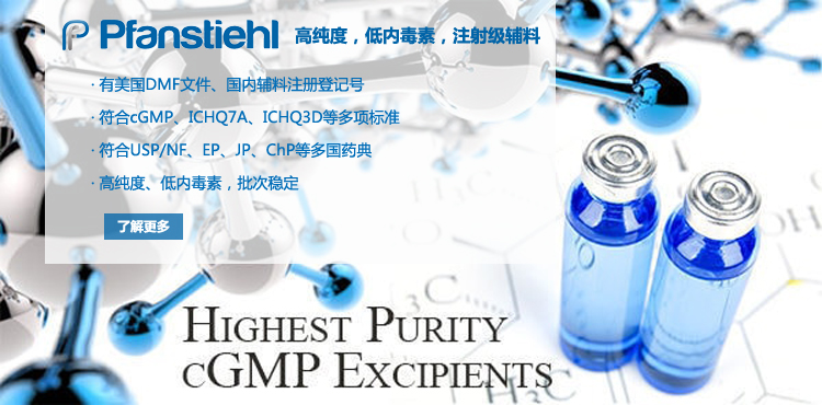 “熱烈祝賀Pfanstiehl的注射級甘氨酸Glycine(G-140)喜獲CDE登記號F20250000403, 這是Pfanstiehl產品獲得的第18個CDE登記號!”甘氨酸在醫藥輔料制劑中應用廣泛,, 可作為緩沖劑,增溶劑,穩定劑等,具有諸多優勢。Pfanstiehl秉承一貫高品質理念,為滿足全球生物制藥行業對于高品質甘氨酸的需求,隆重推出的注射級甘氨酸Glycine (G-140), 具有超高純度,超低內毒素,超低金屬殘留的特點,單獨檢測29種金屬離子,并且新增DNA,RNA,DNA酶,RNA酶和脂肪酶,亞硝酸鹽等多項質量指標的檢測,符合多國藥典規定(USP, EP, BP, JPE, ChP),可用于生物治療性藥物和疫苗的生產。產品信息:· 產品名稱:Glycine, High Purity, Low Endotoxin, Low Metals, USP, EP, BP, JPE, ChP (G-140)· 中文名稱:甘氨酸· 分子式:C2H5NO2· 分子量:75.07 g / mol· CAS號:56-40-6· 產品貨號:G-140產品特點: · 超高純度,超低內毒素,超低微生物含量,超低金屬雜質殘留· 質量指標新增DNA,RNA,DNA酶,RNA酶,脂肪酶和亞硝酸鹽檢測· 符合多國藥典:USP, EP, BP, JPE, ChP· 符合ICH Q3D標準· 符合GMP標準· 已獲DMF和CDE登記號 產品應用:· 緩沖劑· 穩定劑· 增溶劑如果您對Pfanstiehl注射級別Glycine G-140感興趣,歡迎聯系Pfanstiehl 中國區代理商北京西美杰科技有限公司獲得如下詳細的產品概況說明文件和測試樣品。Pfanstiehl Inc.最新產品系列如下,歡迎聯系北京西美杰科技有限公司獲取100g裝免費樣品。北京西美杰科技有限公司為Pfanstiehl中國代理,為客戶提供完善的技術支持與售后服務。歡迎撥打西美杰客服電話400-050-4006或者登陸網站www_xmjsci_com.jiaxiaoweb.cn了解更多信息。 更多>